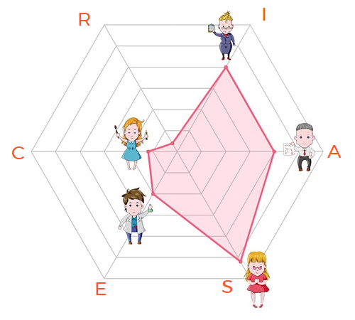 'S' baví pomáhat lidem při řešení jejich osobních nebo zdravotních problémů, při jejich vzdělávání, při péči o malé děti i dospělé osoby. Je ochoten/ochotna se angažovat v různých oblastech péče a služeb, které jsou zaměřeny na sociální problémy a společenské otázky.