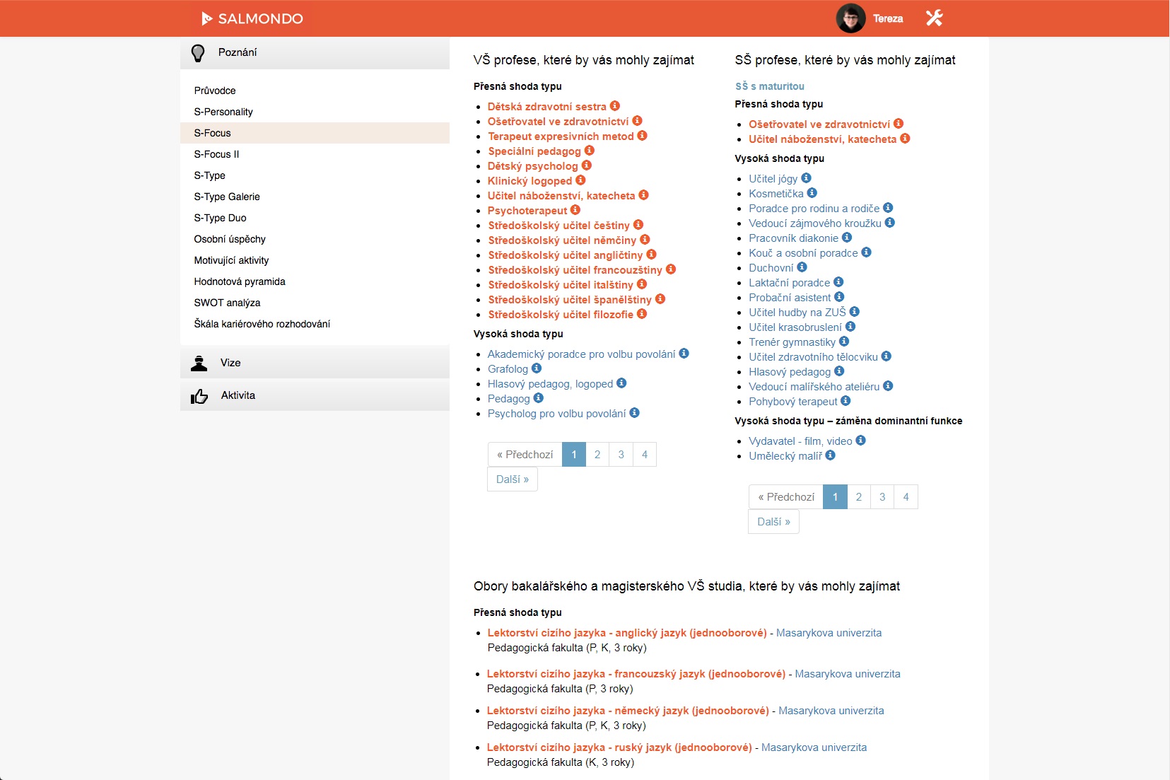 Výpis návrhu typově vhodných profesí v Salmondu.