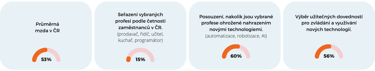 Nejlépe si žáci vedli při posuzování ohroženosti vybraných profesí novými technologiemi a při výběru užitečných dovedností pro zvládání a používání těchto technologií. Zdá se tedy, že o vlivu moderních technologií na svět práce mají žáci určité povědomí. Kvíz naopak ukázal, že se příliš neorientují v tom, jak jsou v ČR zastoupeny běžné profese (jako je učitel, řidič nebo prodavač) nebo jaká je v ČR průměrná mzda.