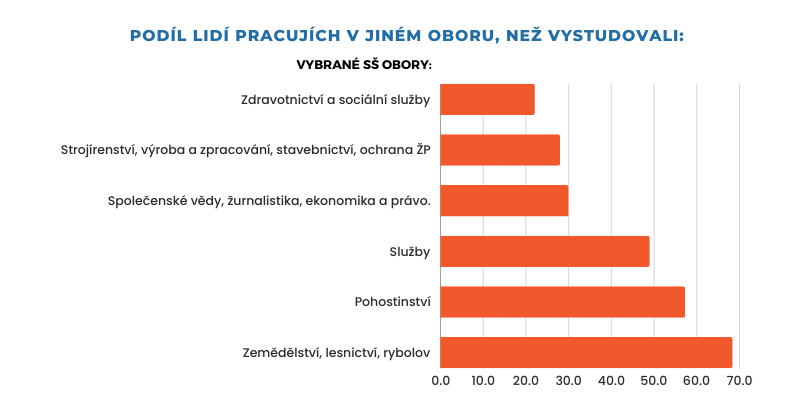 V České republice více než 50 % lidí pracuje mimo svůj vystudovaný obor (studie Skills Mismatches). To svědčí o tom, že výběr školy či oboru nemusí nutně znamenat konečné rozhodnutí o kariéře.