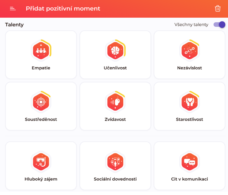 Proto nyní kromě toho, že žákům pomáháme jejich talenty objevit a pojmenovat prostřednictvím diagnostických nástrojů, je nově hravou formou motivujeme, aby si v Salmondu pravidelně zapisovali, co se jim daří, a tyto zkušenosti následně propojovali s talenty, se kterými v aplikaci pracujeme.