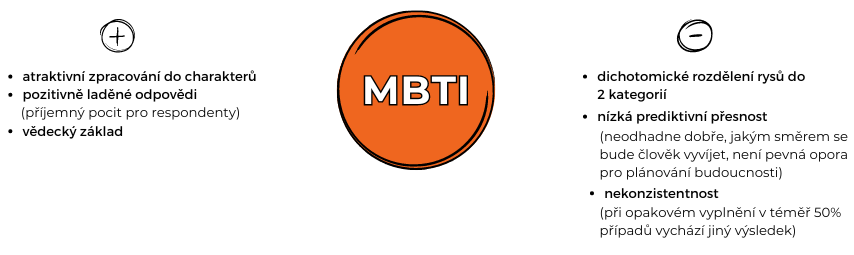 Nejspíš převážně to, že získáme vždy jen pozitivní výsledky. Např. lidé, kterým v Big 5 vychází, že jsou “méně otevření novým zkušenostem”, jsou v MBTI pojmenování jako “smysloví (S)“. Nízká míra přívětivosti (Big 5) je přejmenována na "myšlení (T)"(MBTI slučuje rys „nebrat v úvahu emoce jiných lidí“ s rysem „logika“). A možná nejvíce negativně znějící osobnostní rys emoční stabilita je z celého testu MBTI úplně vynechána.